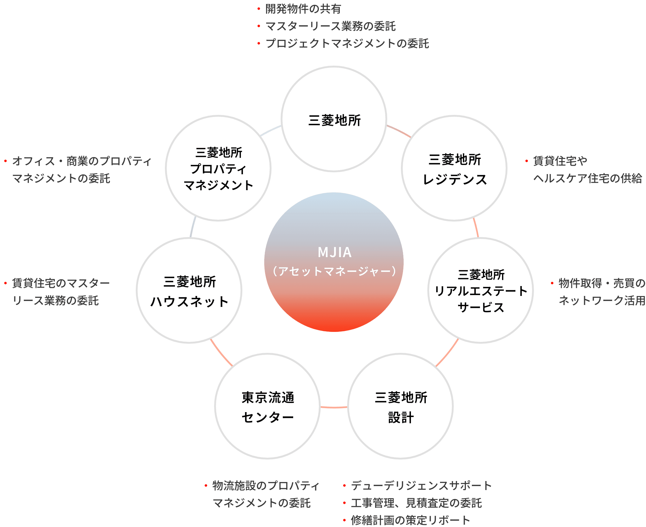 不動産ファンド運用の様々なフェーズにおいて三菱地所グループ各社と緊密に連携を図り、