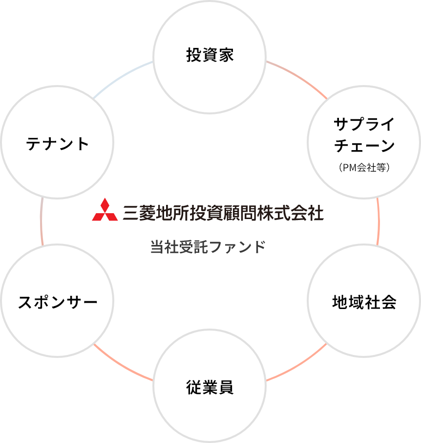 当社および当社が受託するファンドに関わるステークホルダーの皆様との良好なコミュニケーションを基盤に、バリューチェーン全体で環境負荷の低減や社会的責任を果たすことに真摯に取り組み、持続可能な社会の実現と企業価値の向上の両立を目指してまいります。